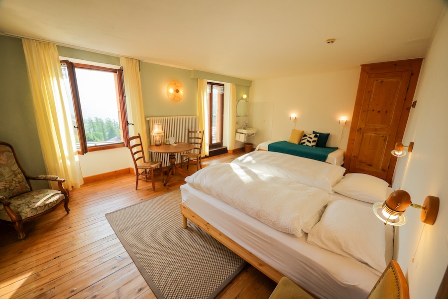 Il existe plusieurs options de chambres, toutes avec salles de bains partagées: